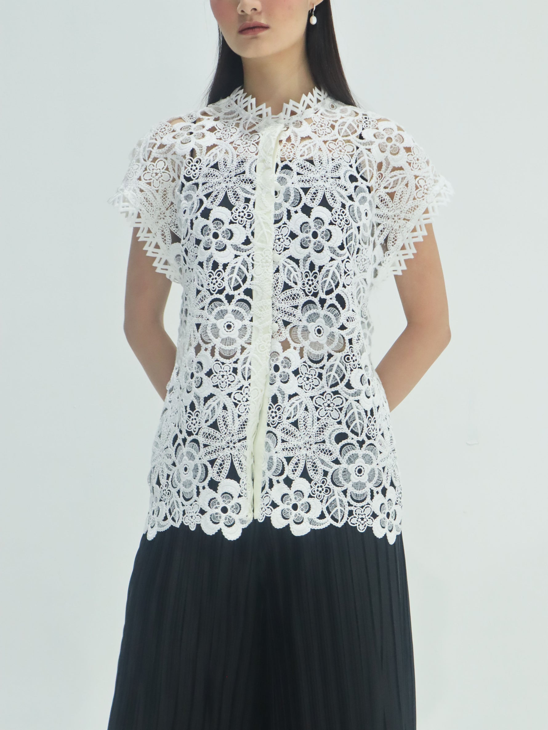 Unit price perThe Odelia Lace Blouse captures timeless femininity with its intricate floral lace and soft, structured drape. Designed with delicate cap sleeves and a refined straight cut, it offers both polish and ease. Lightly lined for comfort while showcasing the lace’s beautiful texture, it’s a versatile piece that moves gracefully from workdays to weekend affairs—effortlessly elevating any look with a touch of elegance.