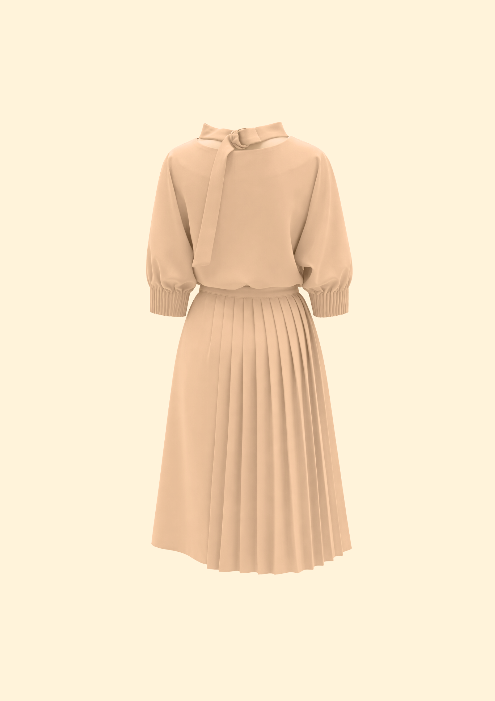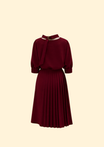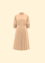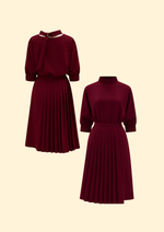 Unit price perThe Elara Suiting Dress is a masterclass in modular tailoring, designed as a versatile 2-piece suiting set that offers multiple styling possibilities. The base features a minimalist mock-neck shift dress with a clean, streamlined silhouette and elbow-length sleeves finished with intricate pintuck cuff detailing. Elevating the architectural feel is a detachable pleated midi overlay skirt, which cinches the waist with a sleek self-tie belt to create a dynamic, layered look. The back is uniquely detailed with an open-neck feature and a sophisticated gold-tone ring closure, ensuring a polished impression from every angle. This transformative set is an exceptional choice for the creative professional, transitioning effortlessly from high-stakes boardroom meetings to refined evening social events.