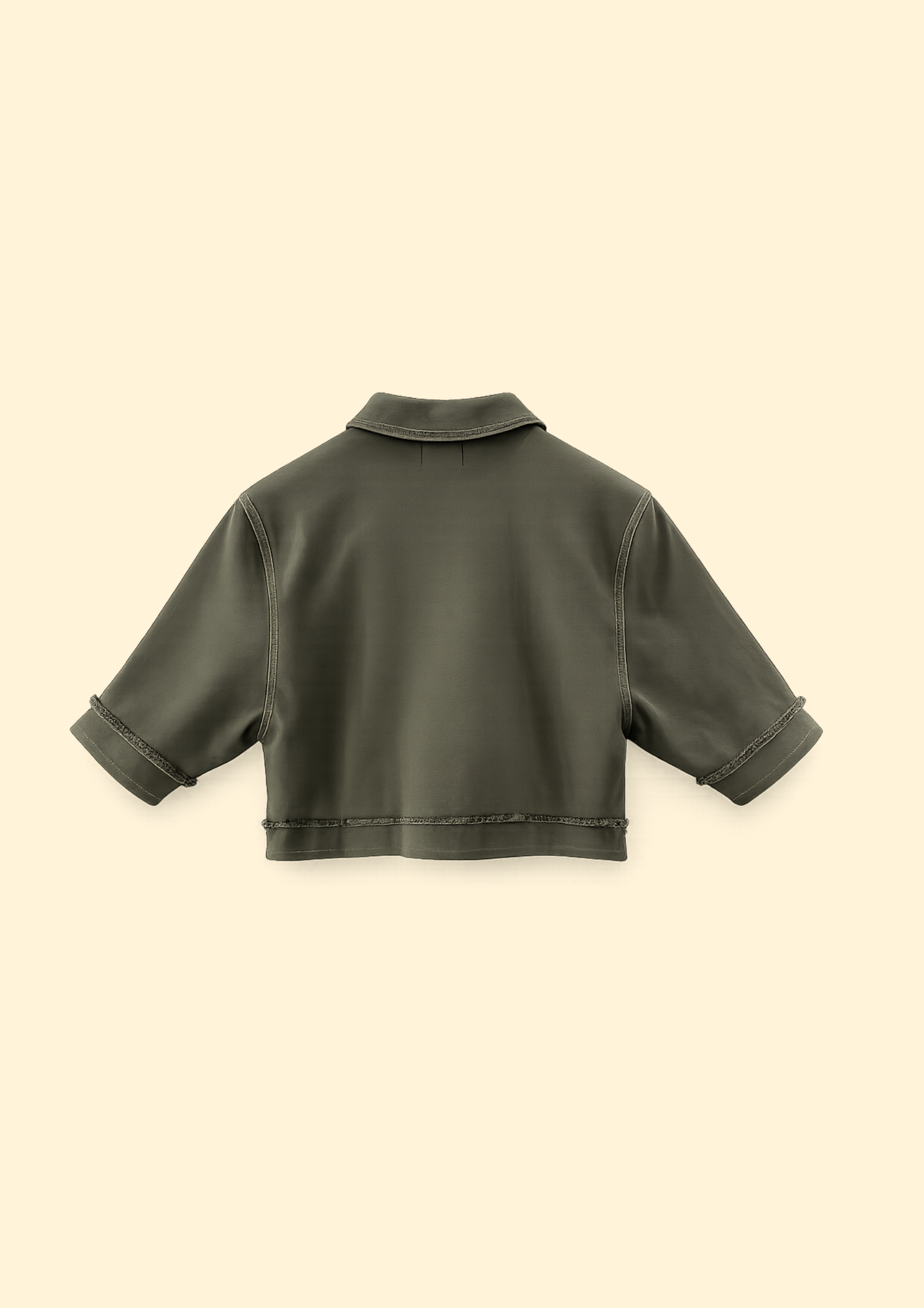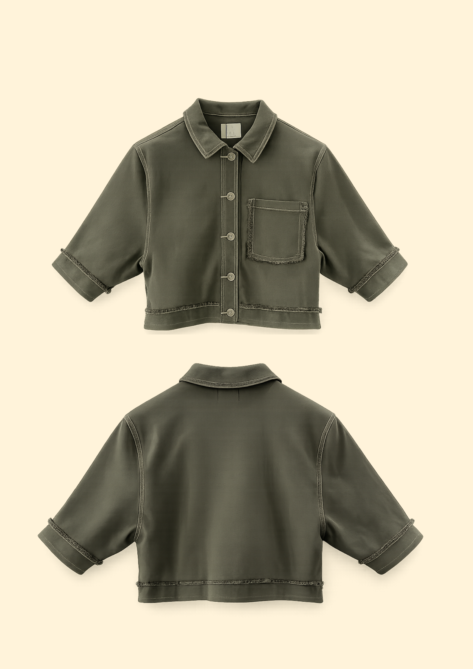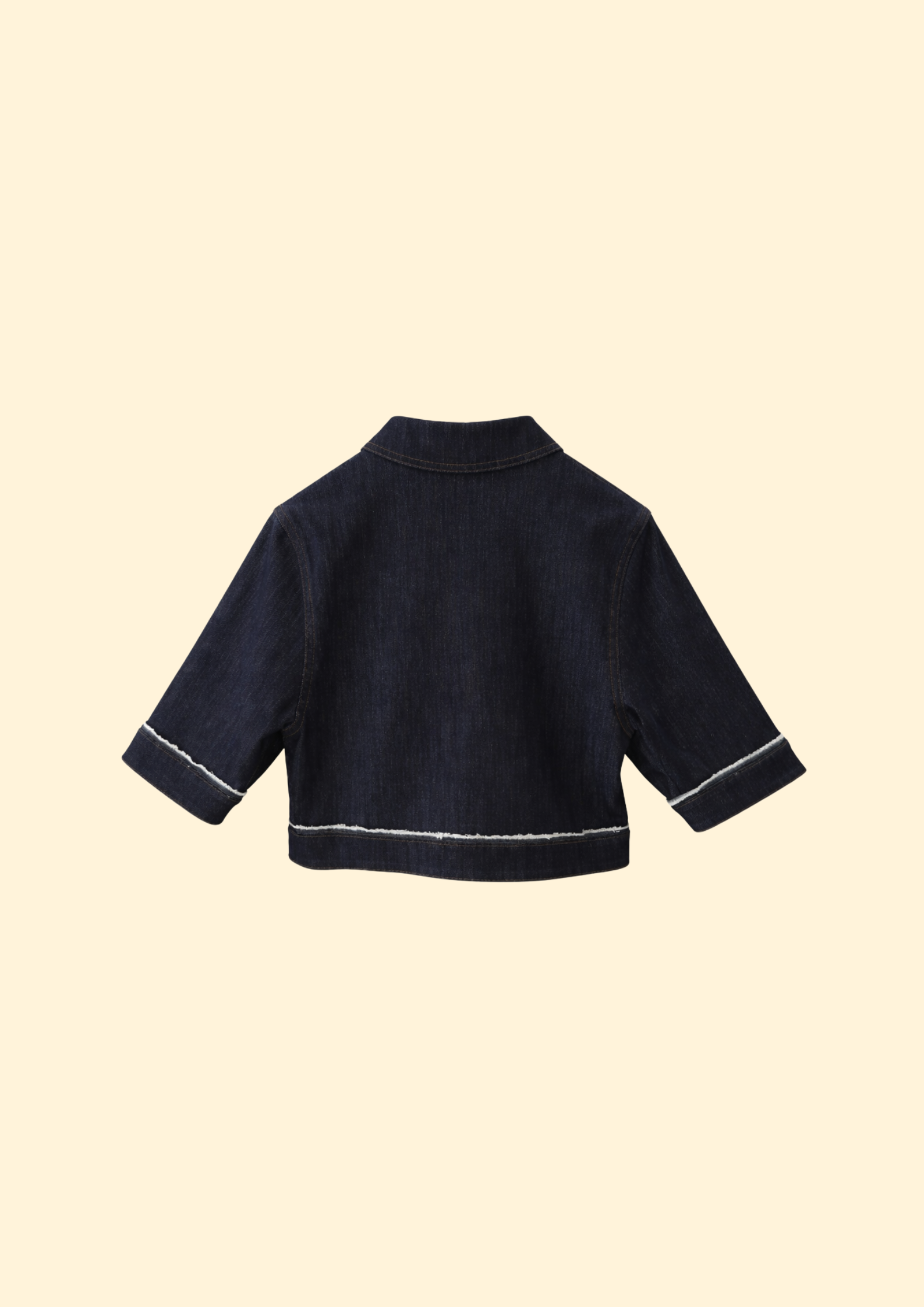 Unit price perThe Freslin Denim Top is a sophisticated cropped button-down blouse that balances a structured boxy fit with refined artisanal details. This collared piece features quarter-length sleeves and is defined by striking contrast frayed trim along the chest pocket, cuffs, and hemline. Its clean, dark denim construction and high-low silhouette make it a versatile staple for creative professional settings, weekend city outings, casual Fridays at the office or as a structured layer over a simple summer dress.