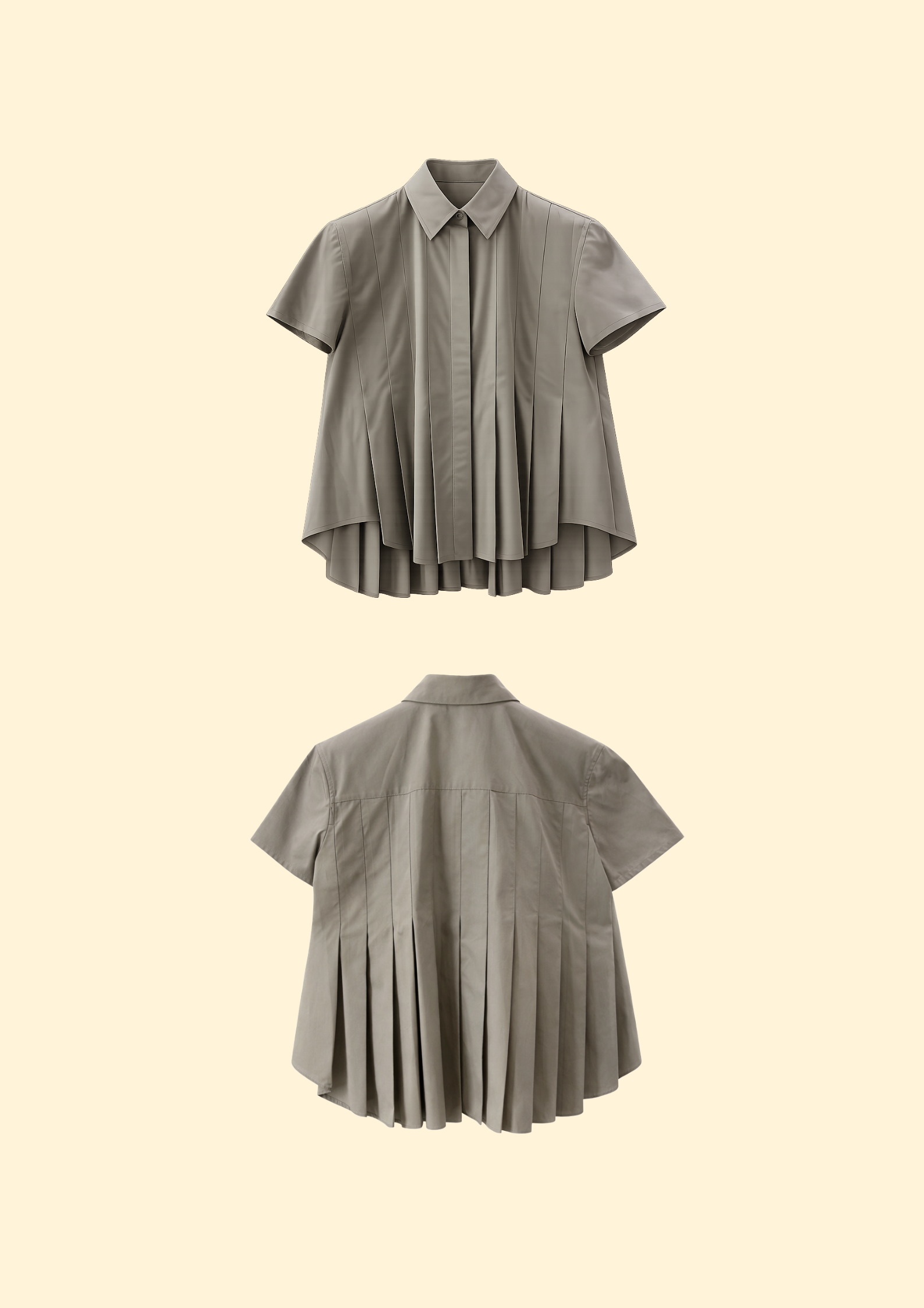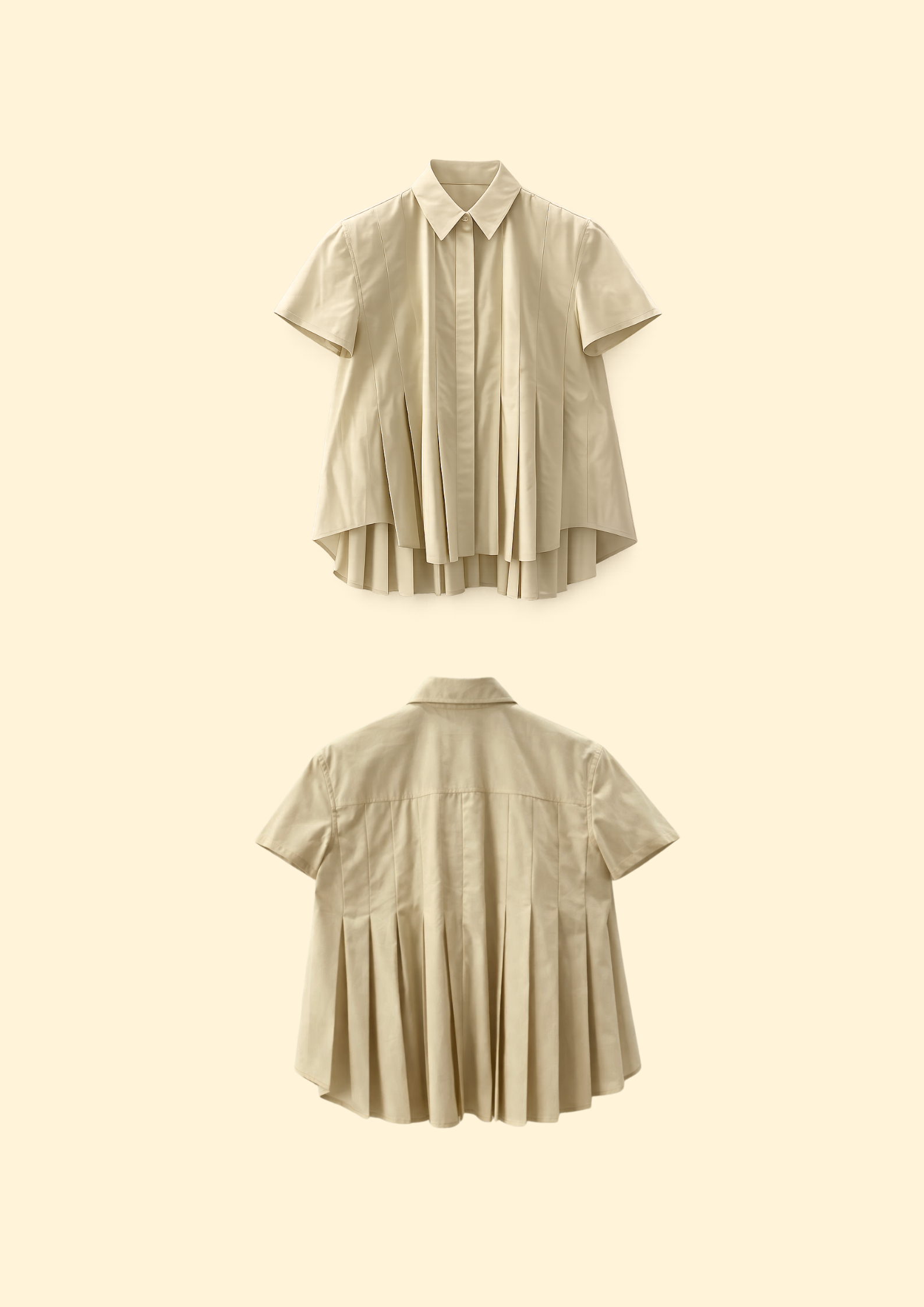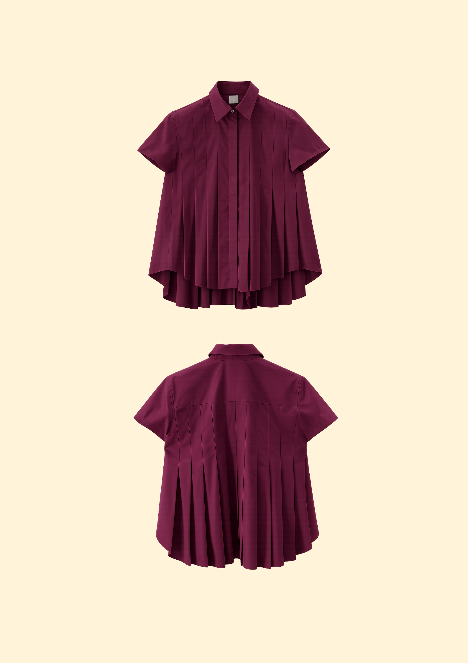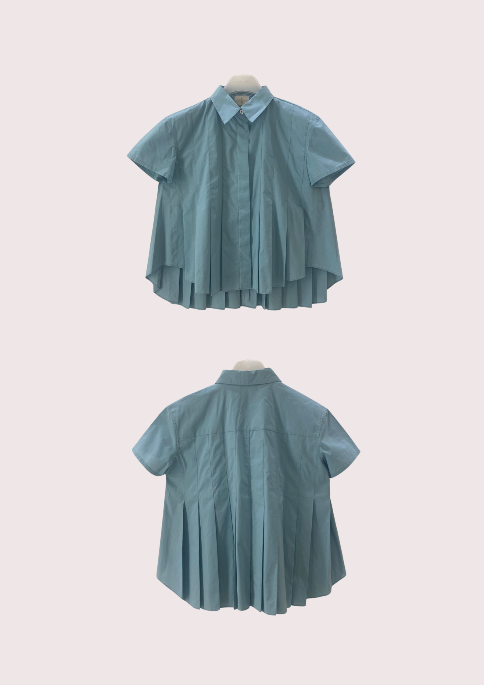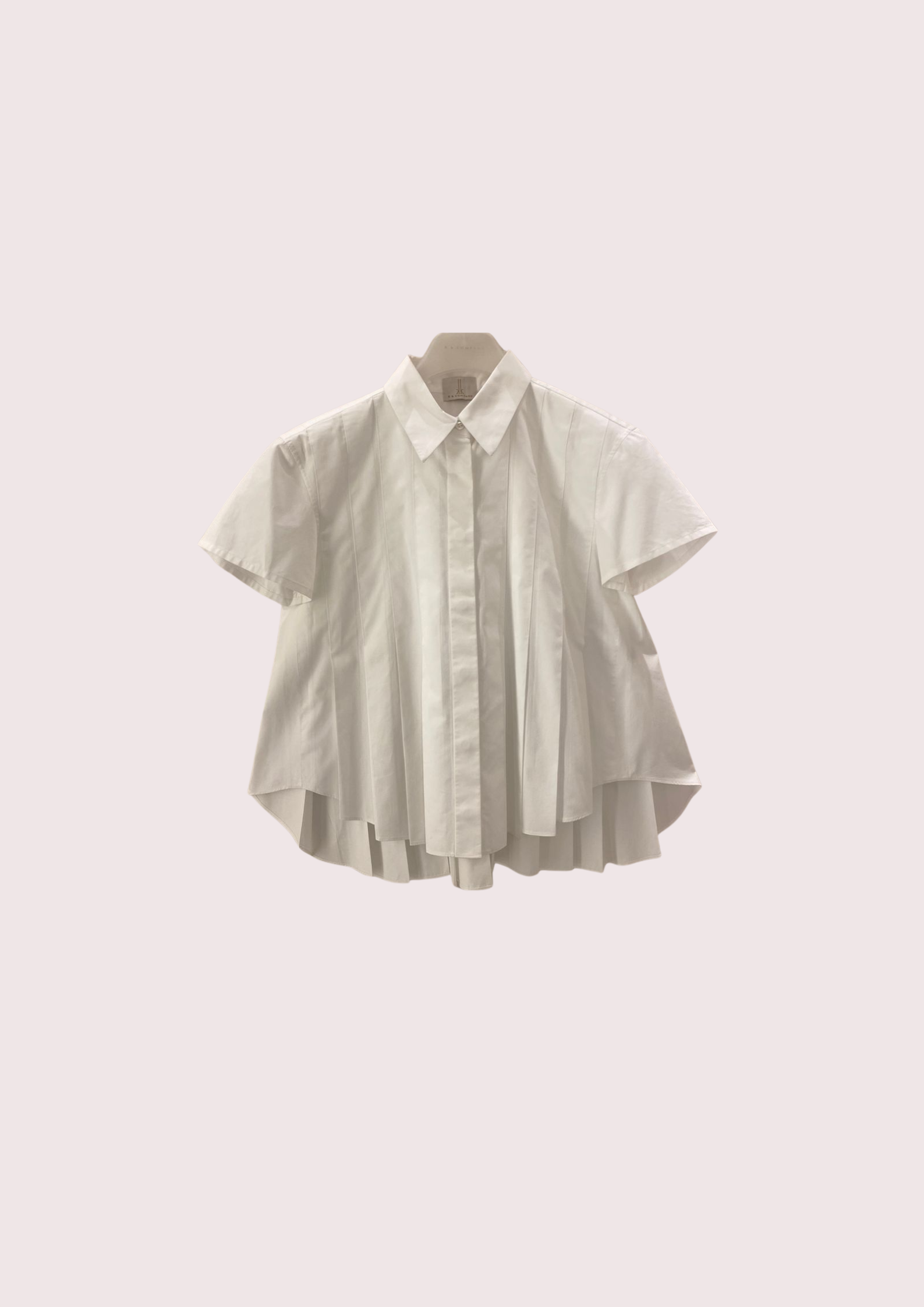 Unit price perThe Phoebe Poplin Blouse elevates the classic shirt with refined structure and soft volume. Designed with crisp pleats that flow into a flared silhouette, it offers effortless movement and a flattering drape. The pointed collar and button-down front lend timeless polish, while the high-low hem and pleated back create a modern, feminine edge. A versatile piece that balances ease and sophistication for any occasion.