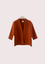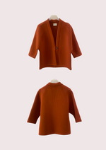 Unit price perThe Wilma Thick Knit Jacket showcases a relaxed, boxy silhouette with cropped sleeves and a clean open-front design secured by a single button. Crafted from thick knit fabric, it offers both structure and comfort, making it an effortless layering piece. Its minimalist lines and rich color add modern sophistication. Perfect for travel, it provides lightweight warmth and versatility—easily transitioning from airport lounges to casual strolls or evening outings while maintaining a polished, refined look wherever the journey takes you.