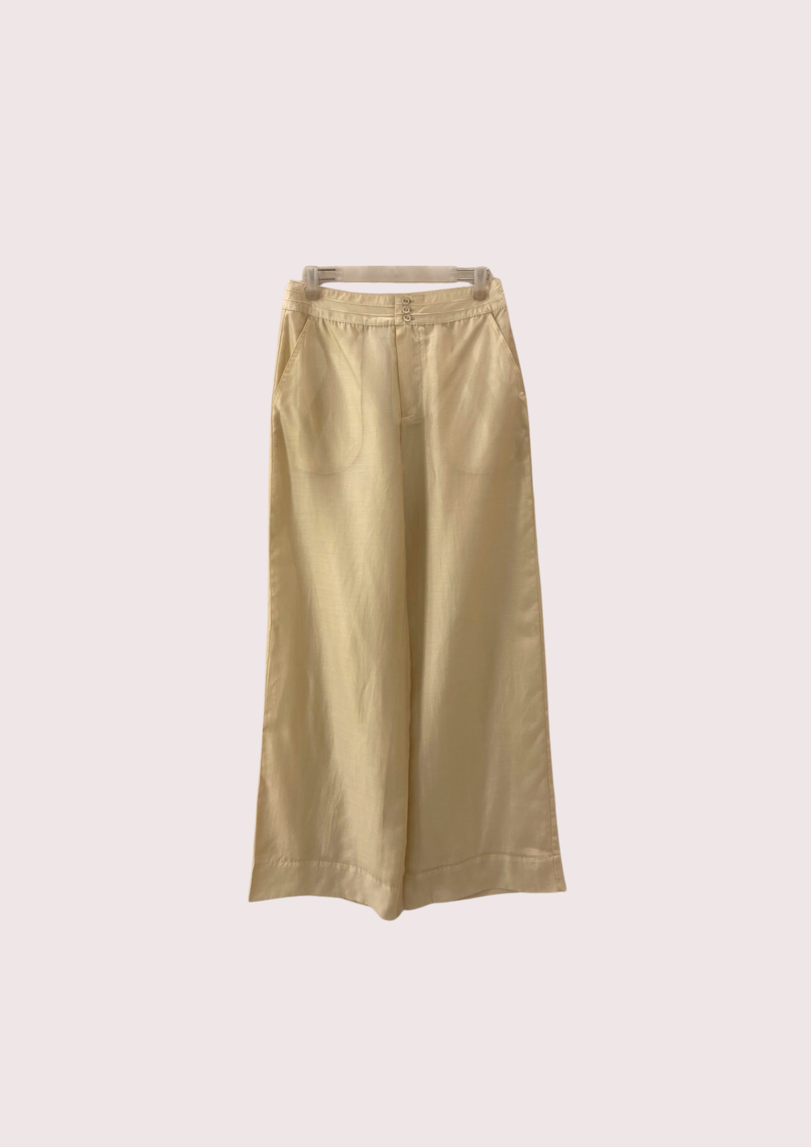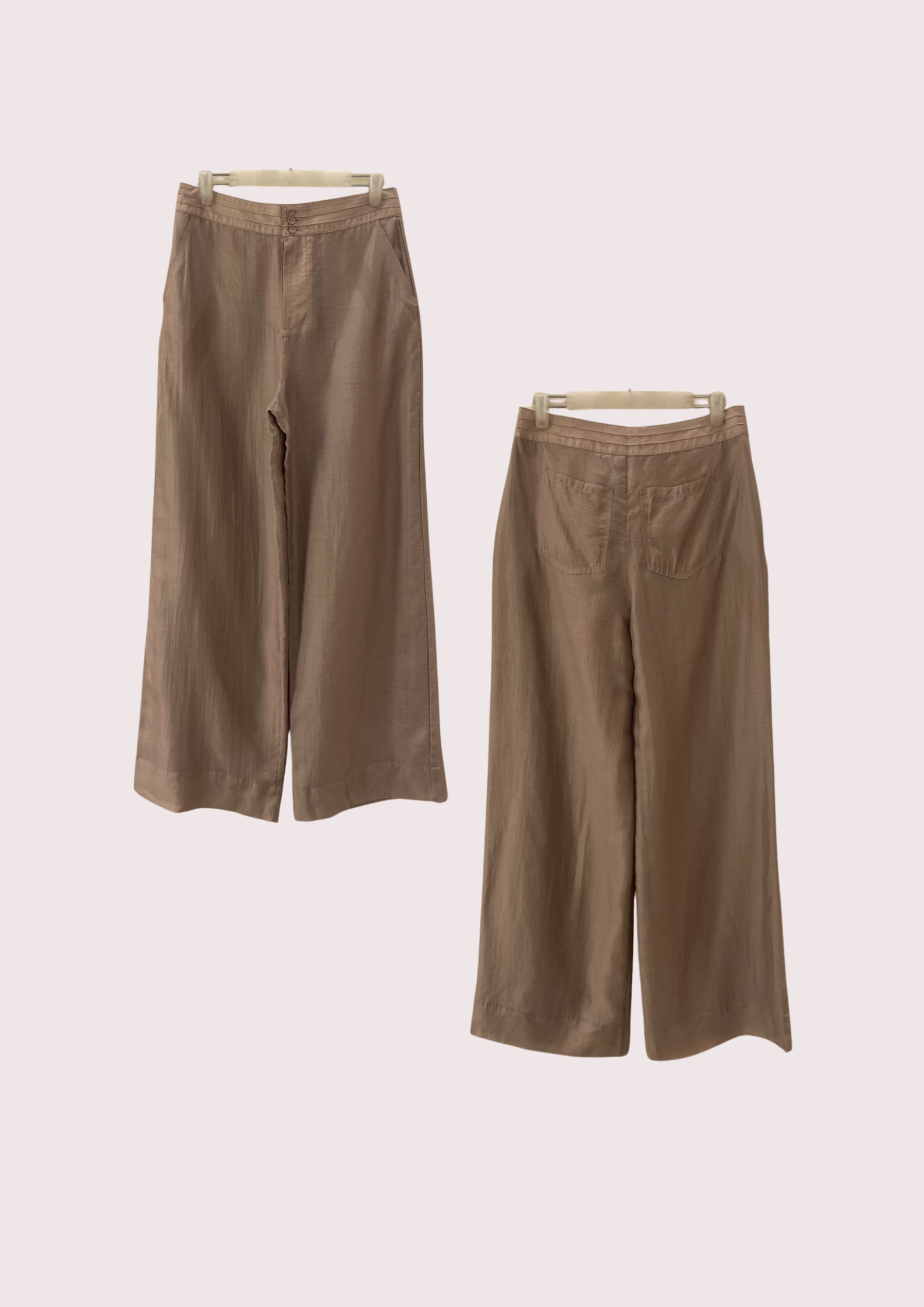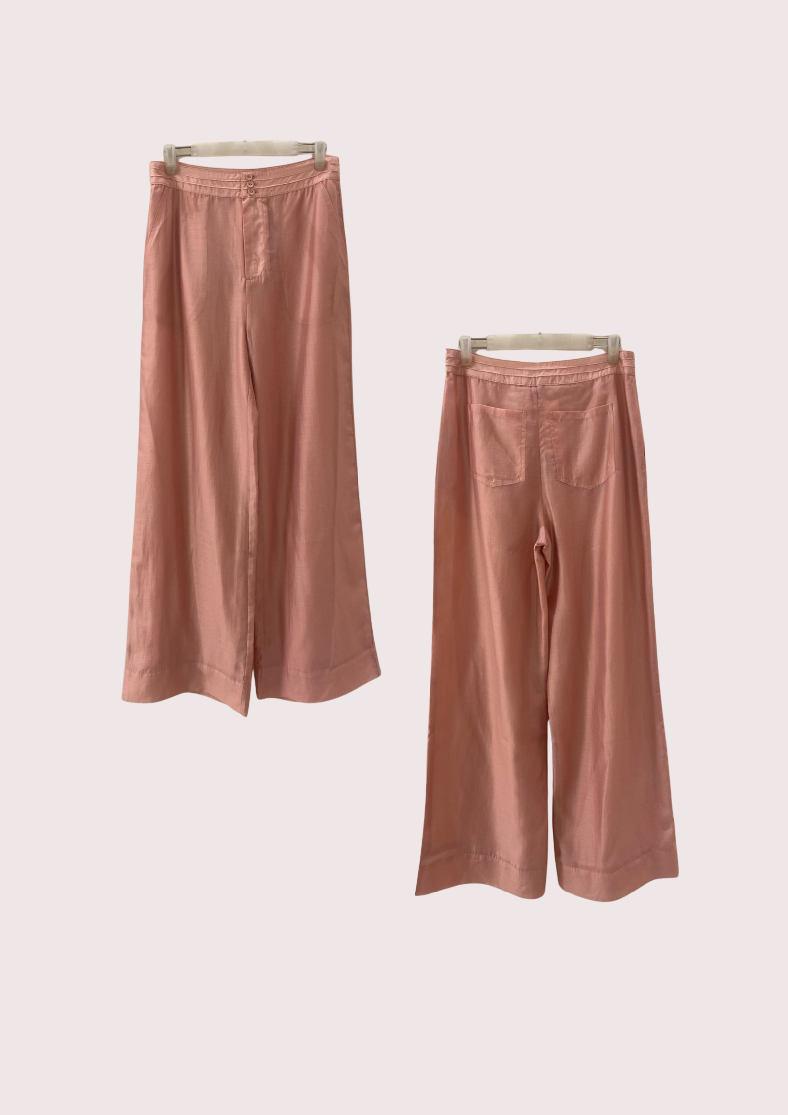 The Bianca Silk Blend Pants offer effortless sophistication with their fluid drape and subtle sheen. Designed with a high-rise fit, front and back pockets, and a relaxed wide-leg silhouette, they bring both comfort and elegance to everyday dressing. Crafted from a soft silk-blend fabric, they move gracefully with you—perfect for travel, casual afternoons, or polished city strolls.