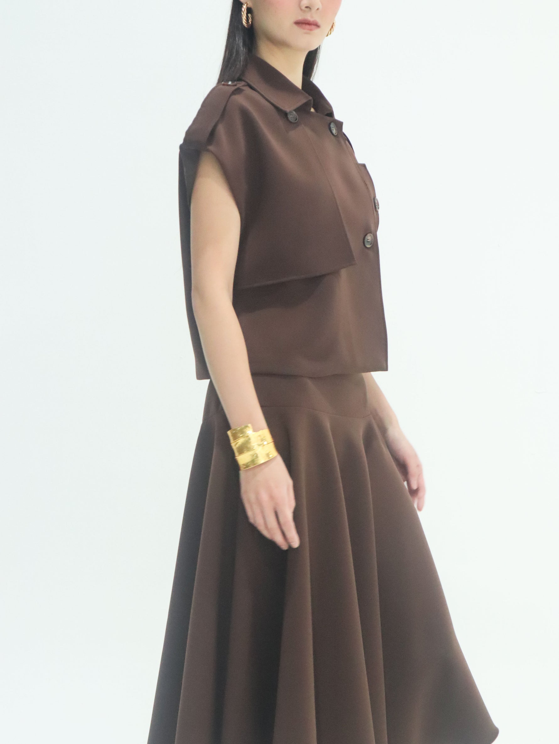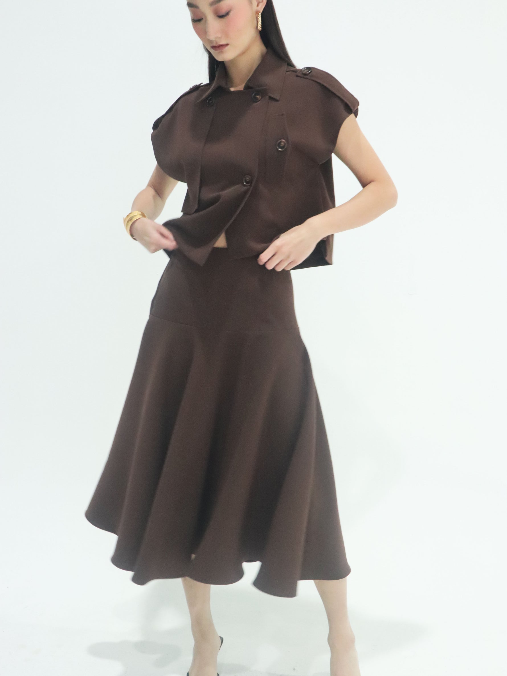 Unit price perThe Celine Midi Skirt is a timeless piece that brings graceful movement to any look. Designed with a fitted waist that flows into a full, flared silhouette, it creates an effortlessly feminine shape. The clean lines and subtle structure highlight its refined tailoring, while the mid-length cut allows for versatile styling—from everyday elegance to occasion-ready polish. A modern classic made for fluidity and poise.