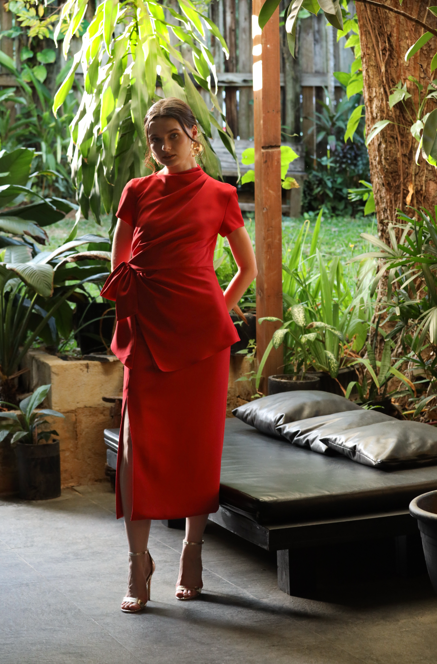 Sleek and sophisticated, the Dolores Skirt is a timeless midi pencil skirt designed to flatter.